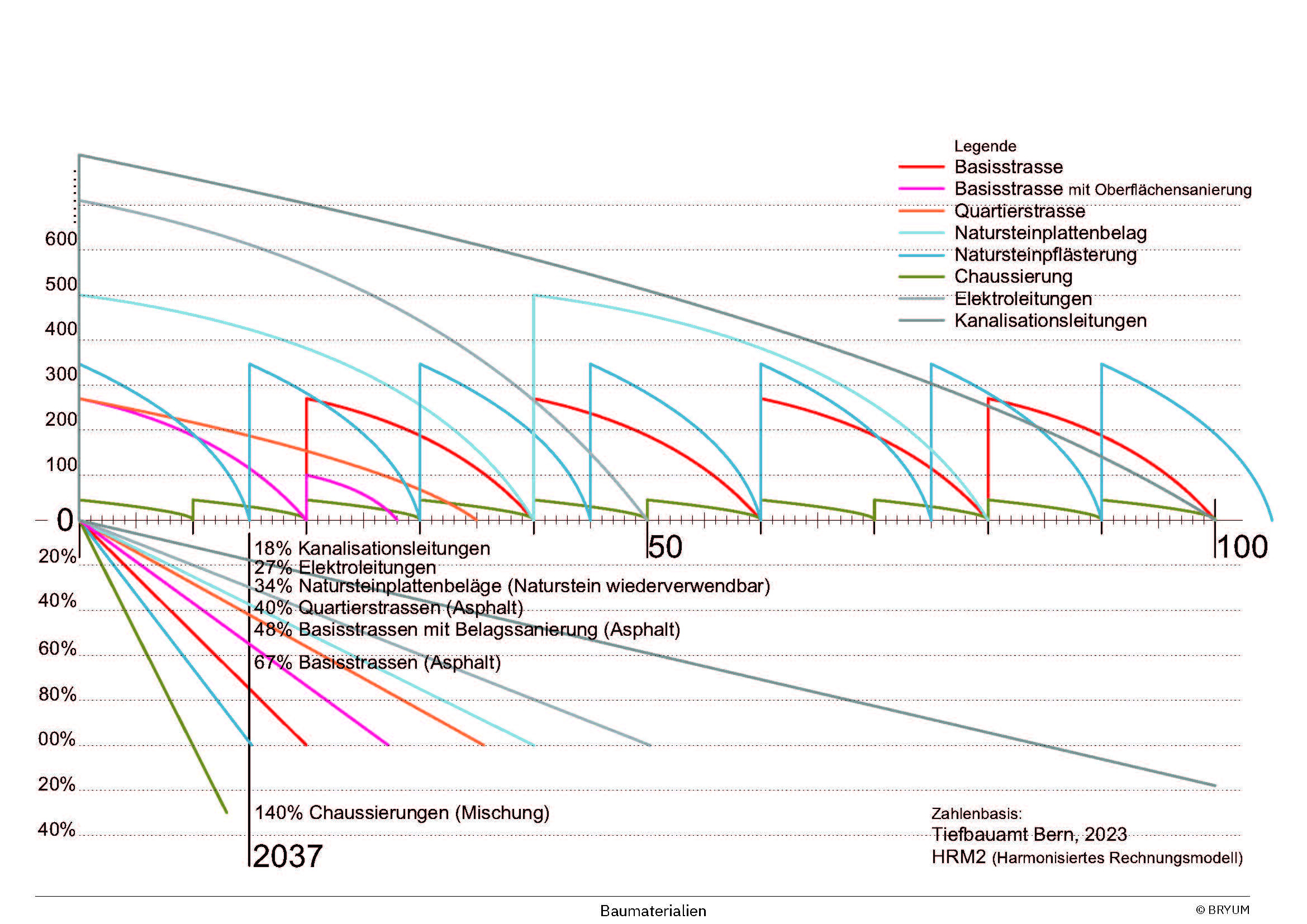 In den nächsten Jahren werden viele Leitungen für den Fernwärme-Ausbau verlegt, behindertengerechte ÖV-Haltestellen gebaut und Strassenbeläge saniert. All diese Projekte bieten Chancen zur Begrünung, die heute viel zu oft verpasst werden. Landschaftsarchitektin Rhea Mollet erklärte an der Pressekonferenz: «In den nächsten zehn Jahren werden im regulären Abschreibungszyklus sowieso fast die Hälfte der Basisstrassen saniert. Sorgen wir dafür, dass im Rahmen dieser Sanierung stadtklimataugliche Strassen realisiert werden.»