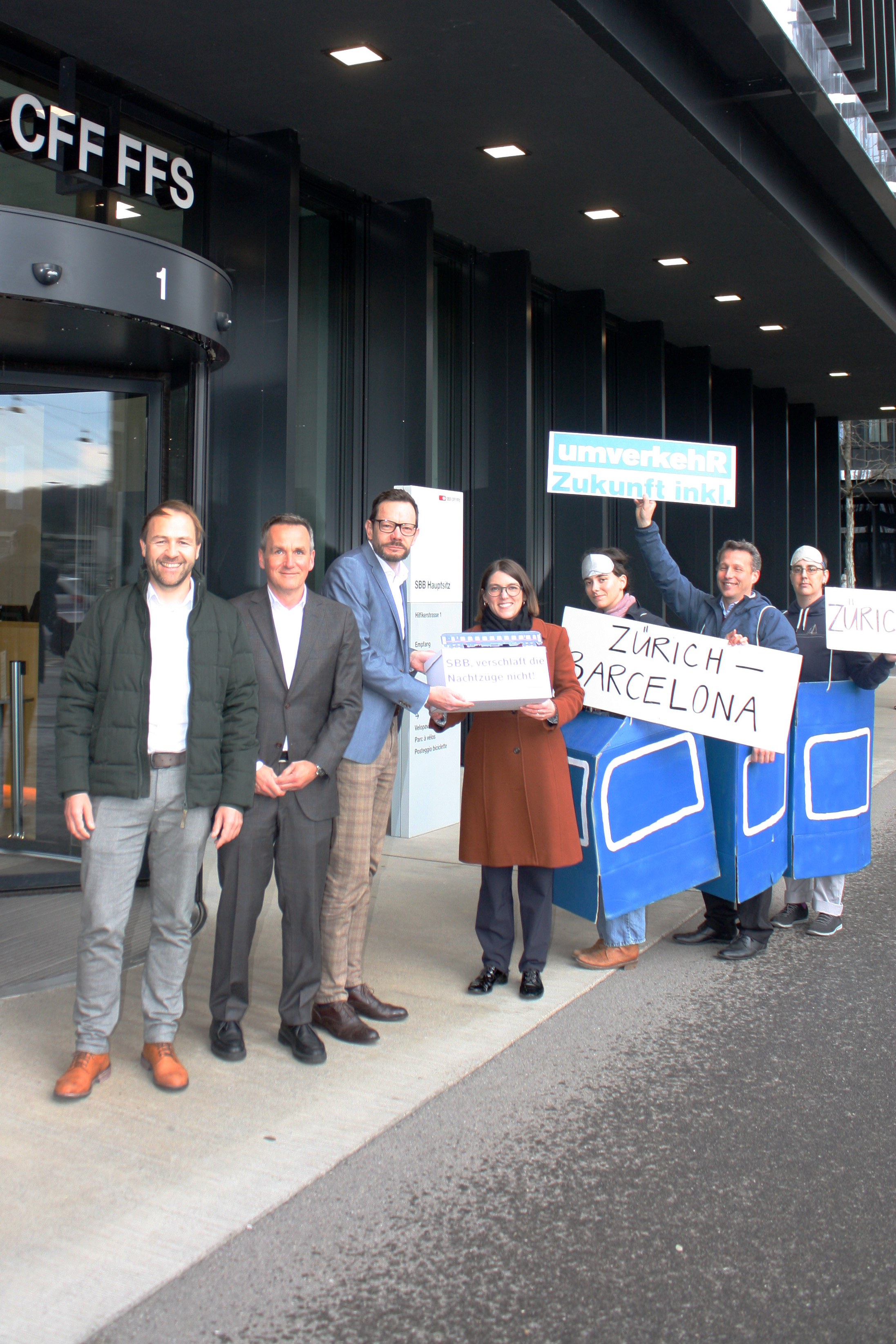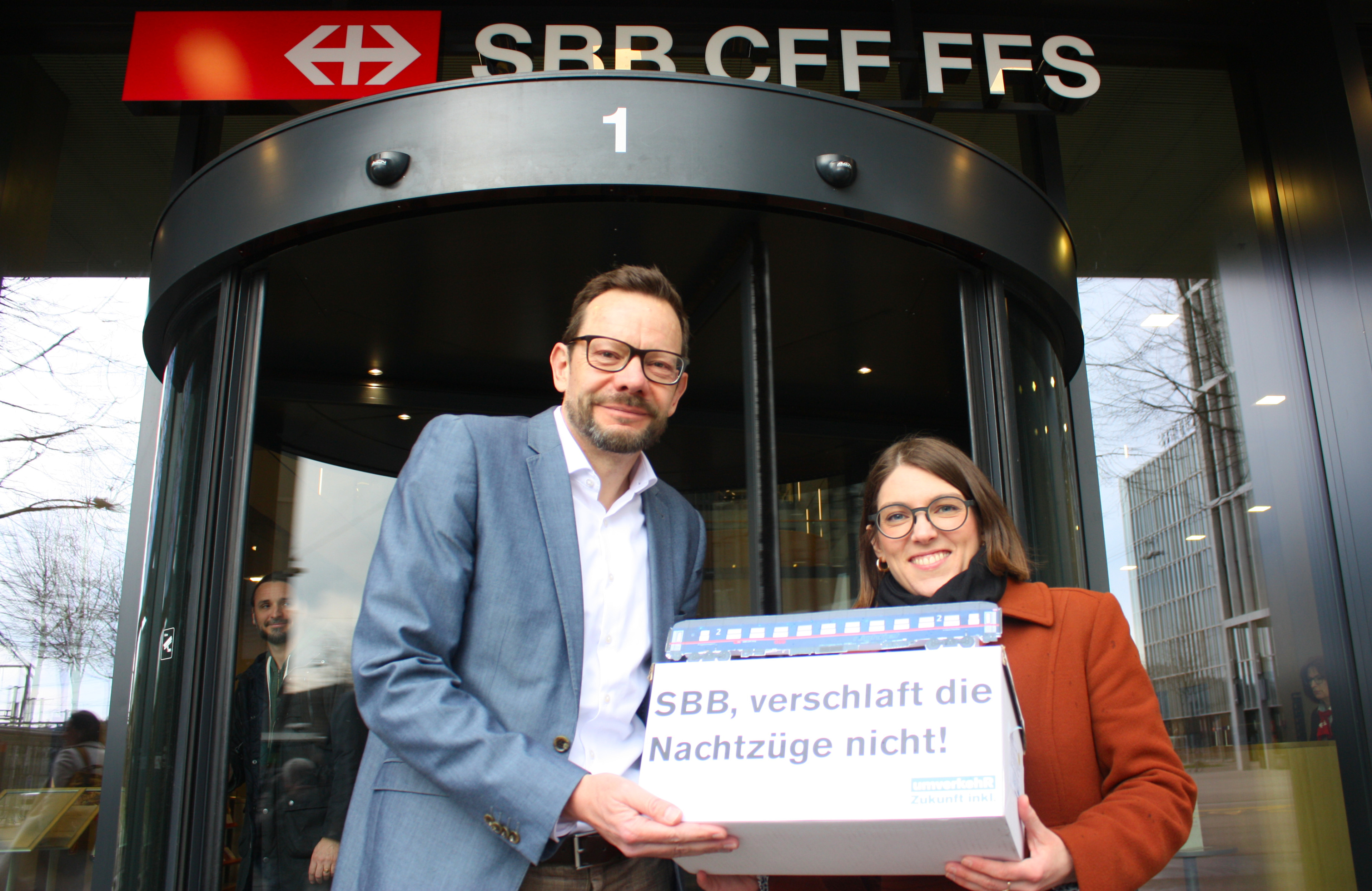 umverkehR hat den SBB einen offenen Brief für die Umsetzung der Nachtzuglinien nach Barcelona und Rom übergeben und diese Forderung im persönlichen Gespräch bekräftigt. Der Ausbau der Nachtzüge hängt nicht zuletzt vom verfügbaren Rollmaterial ab. Die SBB sollen darum jetzt Rollmaterial bestellen. Zudem braucht es aus der Politik ein Bekenntnis zur stabilen und längerfristigen Unterstützung. Die SBB hatten anfangs März bekannt gegeben, die seit 2020 angekündigten Nachtzugverbindungen aufzugeben.